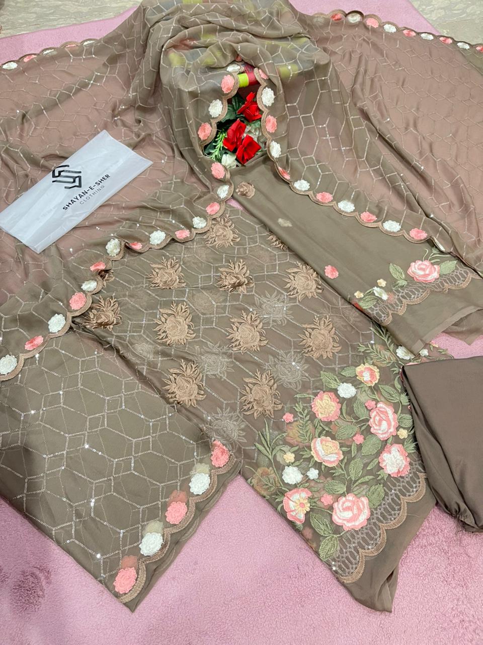 Elevate your wardrobe with this stunning 3-piece unstitched dress crafted from premium chiffon. Perfect for parties, festive occasions, or special gatherings, this ensemble combines elegance with intricate embroidery for a truly luxurious look.